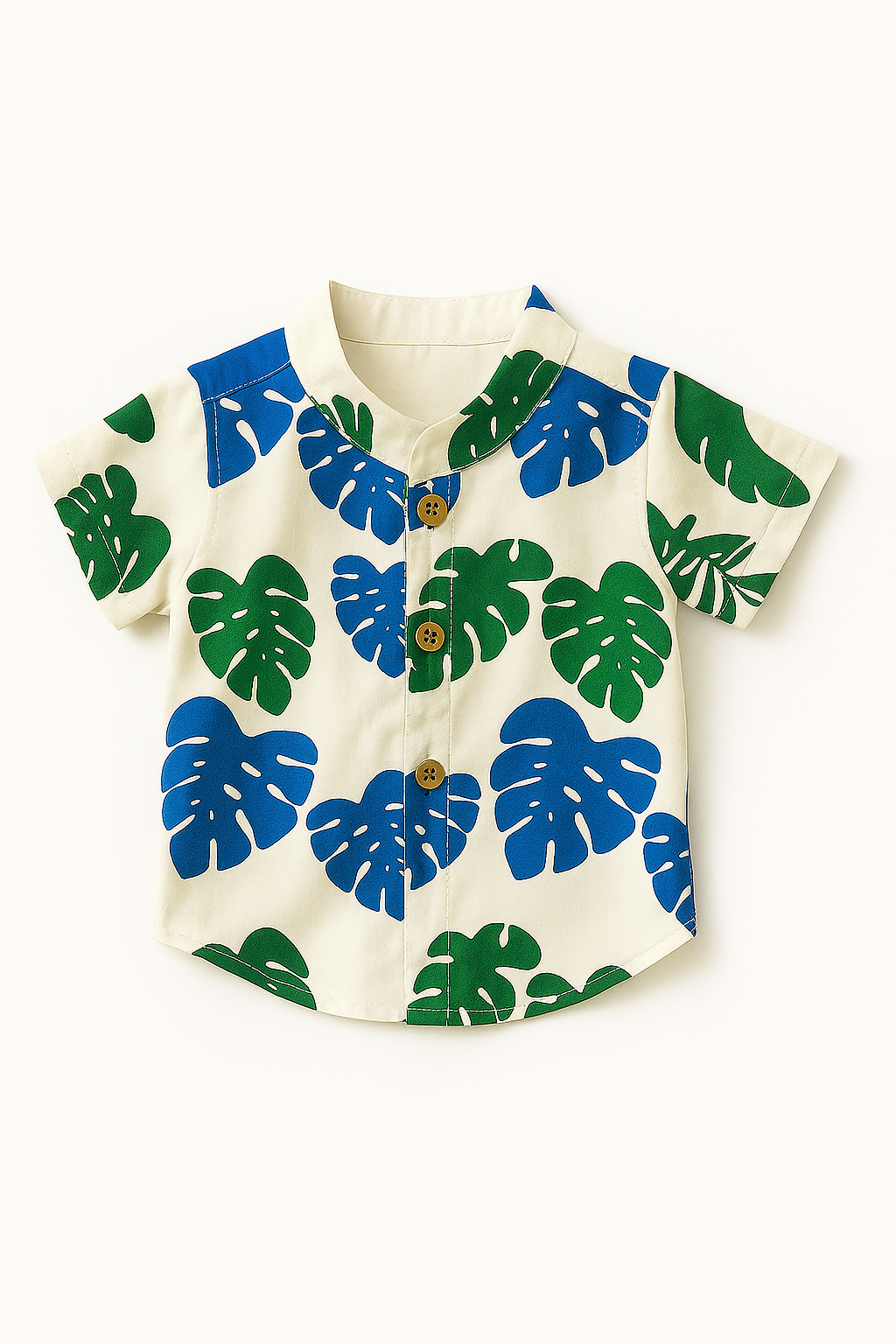 Let your little one explore in style with the Little Safari Set! This adorable two-piece features a breezy 100% cotton shirt with vibrant tropical leaf prints and a comfy pair of caramel brown shorts. Soft, breathable, and perfect for warm days—whether it’s a playdate or a day out.