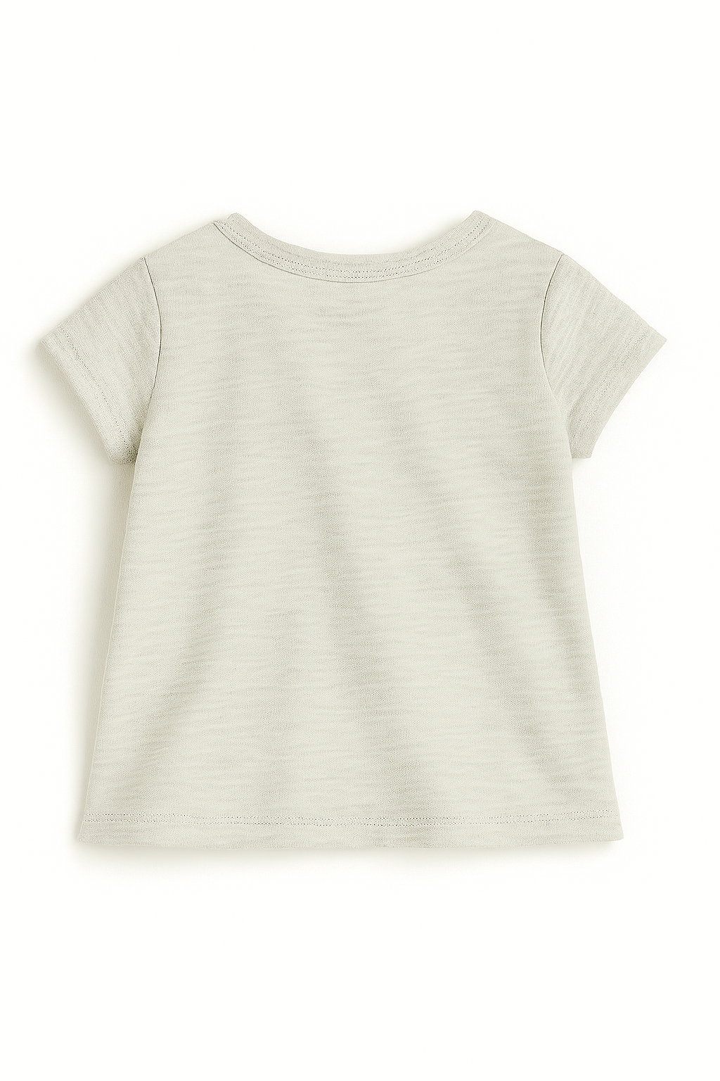 The Pocket Pals Set is a delightful blend of whimsy and comfort, featuring a soft heather gray 100% cotton T-shirt and airy chambray trousers. The shirt showcases a charming embroidered duo of beret-wearing birds perched on a bright pink pocket, adding playful character. Paired with lightweight sky-blue pants featuring ruffled hems and an elastic waistband, this set is perfect for fun-filled days and picture-perfect moments.